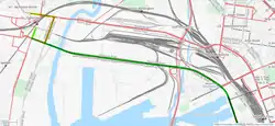 State and local governments have also proposed the extension of Route 48 from its current terminus at Victoria Harbour in Docklands across the Yarra River and into the Fishermans Bend precinct, a future major urban renewal area.[9] It would require the construction of a new tram-only bridge and generally follow the path of Fennell and Plummer Streets. The tram extension is proposed as an interim solution to connect Fishermans Bend residents to the CBD via mass transit until the metropolitan railway network can be extended with new underground stations. The proposed bridge has faced some opposition from local groups and residents, whom fear it will destroy a local park and prevent tall boats from mooring at a nearby marina and travelling upstream.[10] The bridge has been costed by the State Government at over $200 million.[11]