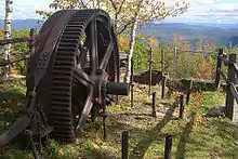 Prospect Mountain originally had to use an incline railway car to access the house at the top where people could dance and eat.[4] Construction on the railway began in January 1895 and cost $120,000 total. Construction was finished six months later, with the railway opening on June 15, 1895.[4] After failing financially, the railway system ceased operation in 1903.[5] The area was bought and soon donated to the State of New York. The nearby hiking trail that heads up towards the mountaintop is part of the old railway.[6]
