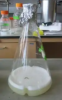 In bulk protein purification, a common first step to isolate proteins is precipitation with ammonium sulfate (NH4)2SO4.[4] This is performed by adding increasing amounts of ammonium sulfate and collecting the different fractions of precipitated protein. Subsequently, ammonium sulfate can be removed using dialysis. During the ammonium sulfate precipitation step, hydrophobic groups present on the proteins are exposed to the atmosphere, attracting other hydrophobic groups; the result is formation of an aggregate of hydrophobic components. In this case, the protein precipitate will typically be visible to the naked eye. One advantage of this method is that it can be performed inexpensively, even with very large volumes.