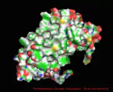 Proteorhodopsin (also known as pRhodopsin) is a family of over 50 photoactive retinylidene proteins, a larger family of transmembrane proteins that use retinal as a chromophore for light-mediated functionality, in this case, a proton pump. Some homologues exist as pentamers or hexamers. pRhodopsin is found in marine planktonic bacteria, archaea and eukaryotes (protae), but was first discovered in bacteria.[1][2][3][4]