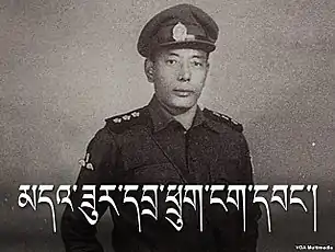 "By sunset on March 9 [1959] thousands of men, women, children started to gather outside the walls of the Summer Palace."[18] On March 10, 1959, the crowd surrounded the summer palace in response to fear that the Communist Chinese People's Liberation Army (PLA) were planning to arrest the Dalai Lama at "a theatrical performance at the Chinese military camp at Silling-Bhuk."[19] The people were determined not to allow the Dalai Lama to leave Norbulingka palace. Some members of the crowd directed aggression at Tibetan officials that were thought to be Chinese collaborators. Tenpa Soepa, who was staying at a house on the night of March 10 near Norbulingka said, "When I arrived at the gate I found Kalon Sampho lying on the ground unconscious." Sampho, "...had arrived at Norbulinka [sic] in a car with his Chinese bodyguard. They got out of their car and when the crowd saw the Chinese guard they began throwing stones."[20] "Phakpalha Khenchung ...had been killed by the protestors. He was a government official, and it was rumored that he had a very close relationship with the Chinese."[20] PLA General Tan Kuan-sen considered the Dalai Lama to be in danger and offered him refuge if he could make it to the Chinese camp. He declined the offer. A week into the fighting, the general ordered two mortar rounds shot toward the palace. At that point, the Dalai Lama decided the time had come to slip out over the mountains, with a very small party, arriving a few days later at the Indian border.[21][22] He was granted asylum by the Nehru government with the stipulation that he would not engage in politics on Indian soil. Meanwhile, Enlai dissolved the Tibetan government and appointed the Preparatory Committee for the Founding of the Tibet Autonomous Region to take its place.[16] In 1959, Tenpa Soepa and other prisoners of war near Toema in Amdo said, "Along the road we could see why our guards were so jumpy. We saw many burnt-out guardposts and even some tanks that were destroyed by Tibetan guerillas. This was Amdo, where the guerrilla war had gone on for years."[20]