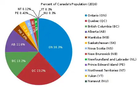 | ON | Toronto | July 1, 1867 | English[lower-alpha 3] | 14,223,942 |