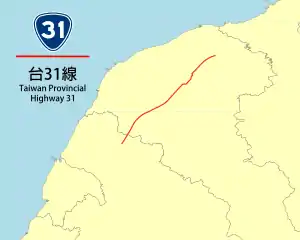 Provincial Highway 31 (Chinese: 台31線) is a 30.036-kilometre-long (18.664-mile) provincial highway in Taoyuan City, Taiwan. An elevated section of the Taiwan High Speed Rail viaduct and under-tunnel acts as a median for most of the highway, except when the highway is near THSR Taoyuan Station and when the highway is near and on its southern terminus.[2] The highway serves the THSR Taoyuan Station.
