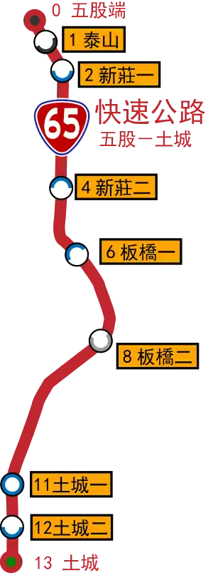 Provincial Highway 65 (Chinese: 台65線) is an expressway, which begins in Wugu at Freeway 1 and ends in Banqiao at Freeway 3 and Provincial Highway 3. The total length is 12.469 km.
