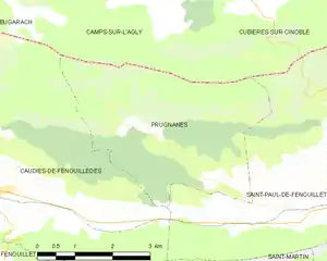 Prugnanes is in the canton of La Vallée de l'Agly and in the arrondissement of Perpignan.