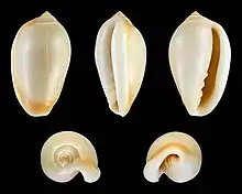 Prunum amygdalum, common name : the almond marginella, is a species of sea snail, a marine gastropod mollusk in the family Marginellidae, the margin snails.[1]