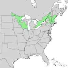 | Natural range of Prunus nigra | |