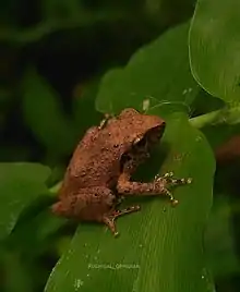 Pseudophilautus wynaadensis, also known as the Wayanad bush frog, common bush frog, tinkling frog, plain-colored bush frog, Malabar coast frog, or dark-eared bush frog, is a species of frog in the family Rhacophoridae. It is endemic to the Western Ghats of India.[2][3]