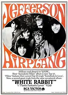Jefferson Airplane's Surrealistic Pillow (February 1967) was one of the first albums to come out of San Francisco that sold well enough to bring national attention to the city's music scene. The LP tracks "White Rabbit" and "Somebody to Love" subsequently became top 10 hits in the US.[131]