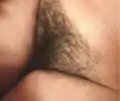 According to feminist writer Caitlin Moran, the reason for the removal of pubic hair from women in pornography was a matter of "technical considerations of cinematography".[29] Hair removal progressed to full removal.[30] Because of the popularity of pornography, pubic hair shaving was mimicked by women.[31][32]