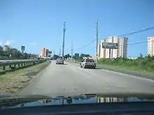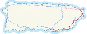 Puerto Rico Highway 3 (PR-3) at nearly 100 miles long,[1][2] is the second longest highway on Puerto Rico (after PR-2). It connects the San Juan neighborhood of Río Piedras to downtown Salinas indirectly around the eastern coast of the island.[3] Highway 3 ranges from a three lane urban avenue in San Juan to a one lane rural road past Fajardo. While other roads connect San Juan, it runs the coastline of Puerto Rico east of San Juan, beginning in Río Piedras near Santurce (where it is known as the Avenida 65 de Infantería) and goes to Fajardo where it goes south paralleling the coastline to Humacao and Maunabo. It goes up to a mountain-scenic route and goes west to Salinas, where it meets PR-1.[4][5]