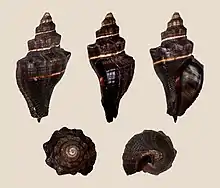 | Five views of a shell of Pugilina morio | |