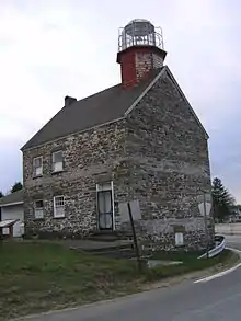 A few miles to the west from the village of Pulaski at the mouth of the Salmon River a lighthouse was built. In the 1830s the government engineers determined that the mouth had sufficient depth that it could harbor thirty ships. So in August 1838 the lighthouse was inaugurated. The lamp originally ran on whale oil. The harbor was deactivated in 1858. In 1989 a Coast Guard Class II navigation aid was installed.[7] It was placed on the National Register of Historic Places in March 1979.[8]