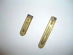 Two reeds from a Mason & Hamlin reed organ.