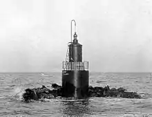 The lighthouse was finished and commissioned on November 1, 1854. A small structure, it sat on seven pneumatic piles, and was equipped with a fifth-order Fresnel lens. It was overturned by an ice floe on February 2, 1856. Nobody was injured as the lighthouse was close enough to shore to make rescue of the keeper fairly easy; the structure, though, was a complete loss.