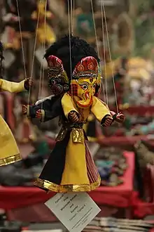 There is slight evidence for puppetry in the Indus Valley Civilization. Archaeologists have unearthed one terracotta doll with a detachable head capable of manipulation by a string dating to 2500 BC.[8] Another figure is a terracotta monkey which could be manipulated up and down a stick, achieving minimum animation in both cases.[8] Puppets are described in the epic Mahabharata, Tamil literature from the Sangam era, and various literary works dating from the late centuries BC to the early centuries AD, including the Edicts of Ashoka.[9] Works like the Natya Shastra and the Kama Sutra elaborate on puppetry in some detail.[10]