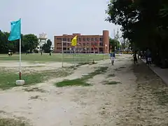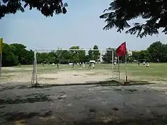 The playing field has a 200-metre six-lane running track, long jump and high jump pits, and a cricket practice pitch. It serves as a single full-size football field or two adjacent, full-size hockey fields. In winter, cricketers of the school playschool/inter-school/KCA league matches.