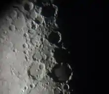 Purbach is a large lunar impact crater located in the rugged southern highlands of the Moon. The distorted crater Regiomontanus is attached to the southern rim. To the northwest is Thebit and just to the northeast lies La Caille.