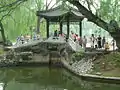 Typical of classical Chinese garden style, and like many of Beijing's parks and gardens, it is a mountain-water landscaped garden.[4] Constructed around canals and large lakes, the Bamboo Park is known for its liberal use of verdant bamboo groves.[5] The garden has a variety of bamboos on display, with the variety ranging as much as up to 50 species.[4] There is also an art museum located within the park.