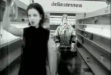 Garbage were not particularly satisfied with the first rough cut of the video, assembled before any post-production had taken place.[58] Vig considered that the first version "came out very flat and with not particularly flattering lighting, because almost every frame he tweaks out in the computer, so there's a lot of post-production stuff to give it that old Twilight Zone look, or Technicolor, 1970s Starsky and Hutch look. [Giacobbe] kept saying 'Don't worry, this is just the canvas I'm going to paint on.'" Vig added that the video later had single frame details "which makes it easier to watch on repeated viewings."[58] The band later described the video as "Fellini-esque".[57] The first day of shooting included filming on location at a supermarket, the second day in a hospital and the third in a cemetery.[59] One of the props on the first day, a stuffed deer mounted on wheels, broke loose and caused a minor car accident. At the hospital, Giacobbe injured himself in a fall while filming.[59]