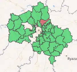 Pushkinsky District (Russian: Пу́шкинский райо́н) is an administrative[1] and municipal[2] district (raion), one of the thirty-six in Moscow Oblast, Russia. It is located in the northern central part of the oblast. The area of the district is 571.47 square kilometers (220.65 sq mi).[2] Its administrative center is the city of Pushkino.[1] Population: 177,510 (2010 Census);[3] 163,439 (2002 Census);[8] 123,630 (1989 Census).[9] The population of Pushkino accounts for 58.0% of the district's total population.[3]