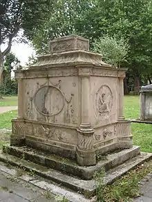 The 18th century tombs include four which are Grade II listed: the table tomb at the park entrance, the tomb of archaeologist Robert Wood (1717 – 1771), merchant banker Stratford Canning (1744-1787)[8] and Joseph Lucas (c. 1758-1833)[9]