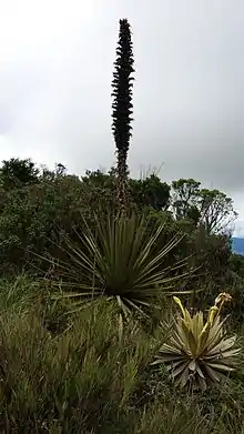 Puya is a genus of the botanical family Bromeliaceae. It is the sole genus of the subfamily Puyoideae, and is composed of 226 species.[1][2] These terrestrial plants are native to the Andes Mountains of South America and southern Central America. Many of the species are monocarpic, with the parent plant dying after one flower and seed production event.