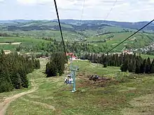 In Pylypets, there is a winter sports resort with three ski lifts and a total length of more than 20,000 m (66,000 ft). The longest descent is at 1,497 m (4,911 ft) high Hymba (Гимба) and has a length of 4,000 m (13,000 ft). During the Summer months, the village is a starting point for hiking tourists and a paragliding center.[6][7]