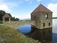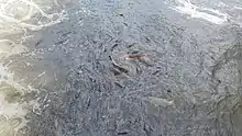 Along this spillway are a wildlife museum and the Linesville spillway, a site famous as "The Place Where the Ducks Walk on the Fishes' Backs".[1][5] Many people throw bread into the water here, and the resulting density of fish (carp) enables the ducks and other waterfowl to walk on top of the carp to vie for the thrown food. The spillway was renovated in 2007.[1] The Pennsylvania Department of Conservation and Natural Resources had planned to prohibit bread as food for the carp and ducks on January 1, 2009, only permitting commercial fish food as part of an effort to clean up the area and increase its wild nature, but subsequently reconsidered.[6]