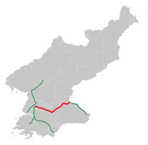 The Pyongyang–Wonsan Tourist Motorway (Korean: 평양원산관광도로) is a 172-kilometre-long highway (107 mi) in North Korea that connects the cities of Pyongyang, the capital of the country, and Wonsan, a city on the coast of the Sea of Japan in the province of Kangwon. The expressway opened in 1978.[1] The highway became North Korea's first toll road in 2018.[2]