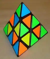The Pyraminx (/ˈpɪrəmɪŋks/) is a regular tetrahedron puzzle in the style of Rubik's Cube. It was made and patented by Uwe Mèffert after the original 3 layered Rubik's Cube by Ernő Rubik, and introduced by Tomy Toys of Japan (then the 3rd largest toy company in the world) in 1981.[1]