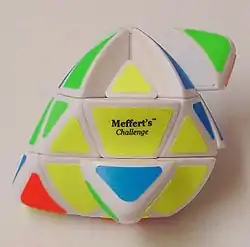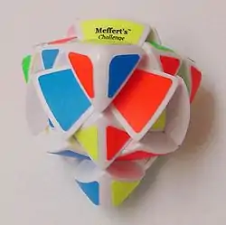 The Pyramorphix (/ˌpɪrəˈmɔːrfɪks/), also called Pyramorphinx, is a tetrahedral puzzle similar to the Rubik's Cube. It has a total of 8 movable pieces to rearrange, compared to the 20 of the Rubik's Cube. Though it looks like a trivially simple version of the Pyraminx, it is an edge-turning puzzle with the mechanism identical to that of the Pocket Cube.