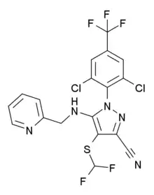 Pyriprole is a phenylpyrazole derivative similar to fipronil. Although recently introduced (in the 2000s) and still under patent protection it is a "classic" insecticide. So far it is only approved in the EU and a few other countries for use on dogs. It is not approved for use on cats or livestock. It has not been introduced as an agricultural or hygiene pesticide.