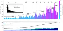 Innovative algorithms and new approaches to electronic structure have been enabling cutting-edge scientific discoveries. This transition, from in-house code to major electronic structure engine, has become possible due to contributions from numerous scientific collaborators; the Q-Chem business model encourages broad developer participation. Q-Chem defines its genre as open-teamware:[8] its source code is open to a large group of developers. In addition, some Q-Chem modules are distributed as open source.[8] Since 1992, over 400 man- (and woman-) years have been devoted to code development. Q-Chem 5.2.2, released in December 2019, consists of 7.5 million lines of code, which includes contributions by more than 300 active developers (current estimate is 312).[6][8] See Figure 3.