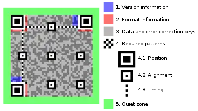 A QR code consists of black squares arranged in a square grid on a white background, which can be read by an imaging device such as a camera, and processed using Reed–Solomon error correction until the image can be appropriately interpreted. The required data is then extracted from patterns that are present in both horizontal and vertical components of the image.[6]