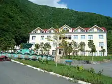 Gabala district is located in Shaki-Zagatala Economic Region in the north-western part of Azerbaijan (southern hills of Great Caucasus Mountains). The main sector of the regional economy is based on agriculture. The agriculture of the region encompasses tobacco-cultivation, silkworm breeding, tea-growing, floriculture, paddy growing, fruit-growing, grain-growing, winegrowing, and sheep breeding.[6] In 2015, over the different branches of the economy the total value of production were in the amount of 203,517 manat, compared to the same period of last year gross output in industry increased by 130 thousand AZN or 0.5%, agriculture 3.244 AZN or 5,6%, construction - 25.222 thousand AZN or 40.4%, transport - 246 thousand AZN or 7.3%, communication - 13 thousand AZN or 1.2%, trade - 457 thousand AZN or 1.97% in Gabala region. Also in 2016, construction and installation works were completed in the ski centre and the "Tufandag" hotel being part of the "Tufandag" Winter-Summer Tourism Complex.[7]