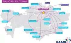 Qazaq Air (Kazakh: Qazaq Eır) is a Kazakh airline, which operates scheduled services from its main hub in Nur-Sultan and focuses on domestic flights.[1]