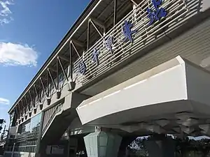 When the station opened in 2011, it was named Shibo railway station (Chinese: 世博車站; pinyin: Shìbó Chēzhàn; lit. 'Expo railway station'), after the Taiwanese pavilion from the Expo 2010 that was relocated nearby. However, the name was met with controversy from locals, who wanted the station name to reflect local culture. The name was changed to Qianjia in January 2013.[2] The pavilion, which was turned into a shopping mall, closed on June 30, 2016.[3]