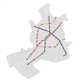 Qom Metro is a metro system serving the city of Qom, Iran, currently under construction. A metro line with a length of 14 kilometres (8.7 mi) with 14 stations is due to be completed by the end of 2021. A monorail line with a length of 7 kilometres (4.3 mi) with 8 stations is partially built but construction has been halted. An extension of the monorail, plus two other brand new metro lines, are being considered as part of future plans.[1]