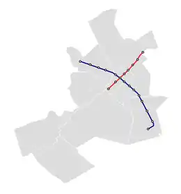 Line A is an underground metro line currently under construction, due to open by the end of 2021.[2] The line has a length of 14 kilometres (8.7 mi) with 14 stations, extending from the Northern edge of the city, passing near Qom railway station and Fatima Masumeh Shrine, terminating at Jamkaran Mosque.