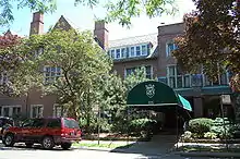 The Quadrangle Club is a membership club at the University of Chicago. It is located at 1155 East 57th Street (the southeast corner of 57th Street and University Avenue) in Chicago. It has a full-service dining room, a bar, several lounges, and sleeping quarters for members and/or their guests. It has 17 sleeping rooms, including 5 suites with an extra sitting room. It is one of the few locations in the city of Chicago that has green clay tennis courts.