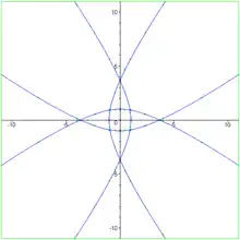 The quadrifolium (also known as four-leaved clover[1]) is a type of rose curve with an angular frequency of 2. It has the polar equation: