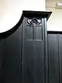The pulpit is carved in Mackintosh designs - it is repeated five times around the curved front. It has been suggested that it represents the wings of a bird protecting young shoots - sown on fertile ground.
