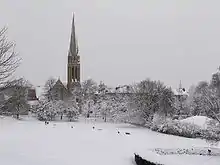The park is popular in snowy weather, when the public make use of the park's steep hills for sledging.