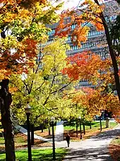 Queen's Sustainability Office, created in 2008, is charged with the university's green initiatives and creating awareness about environmental issues.[71] The office is headed by a sustainability manager, who works with the university, external community groups, and the government. In 2009, with the signing of the Ontario Universities Committed to a Greener World agreement, Queen's pledged to transform its campus into a model of environmental responsibility.[72] Queen's was the second Ontario university to sign the University and College Presidents' Climate Change Statement of Action for Canada, in 2010.[73][74]