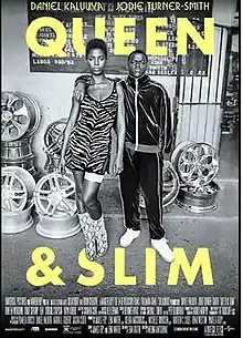 Queen & Slim is a 2019 American romantic road crime drama film directed by Melina Matsoukas (in her feature directorial debut) and with a screenplay by Lena Waithe from a story by James Frey and Waithe. The film's story centers on a young couple (Daniel Kaluuya and Jodie Turner-Smith) who go on the run after killing a police officer in the heat of an argument as self defense during a traffic stop. Bokeem Woodbine, Chloë Sevigny, Flea, Sturgill Simpson and Indya Moore also star.