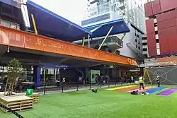 From 1996 the Swanston and Londsdale Street corner of the site was home to the YMCA managed Sailyards Skatepark, it was closed by Melbourne City Council in March 2001 and relocated to Boathouse Drive on the Yarra River in the city's Alexandra Gardens.[6] During this time it also hosted a series of failed ventures, including a craft market and a mini golf course before becoming a simple carpark.