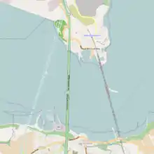 The Queensferry Crossing is a three-tower cable-stayed bridge, with an overall length of 2.7 kilometres (1.7 miles).[4] Around 4 kilometres (2.5 miles) of new connecting roads were built,[5] including new and upgraded junctions at Ferrytoll in Fife, South Queensferry and Junction 1A on the M9.