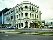 The Queensland Building is located on the south east corner of Wickham and Flinders Streets, Townsville, and has been designed to make the best use of its position with frontages to both streets and a corner entrance. It is across the street from the former headquarters of Burns Philp and Company which has similarities of form and detail.[1]