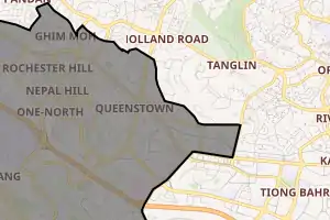 Queenstown is a planning area and satellite residential town situated on the south-westernmost fringe of the Central Region of Singapore. It borders Bukit Timah to the north, Tanglin to the northeast, Bukit Merah to the east and southeast, as well as Clementi to the northwest and west. Its southern and southwesternmost limits are bounded by the Pandan Strait.[4][5]
